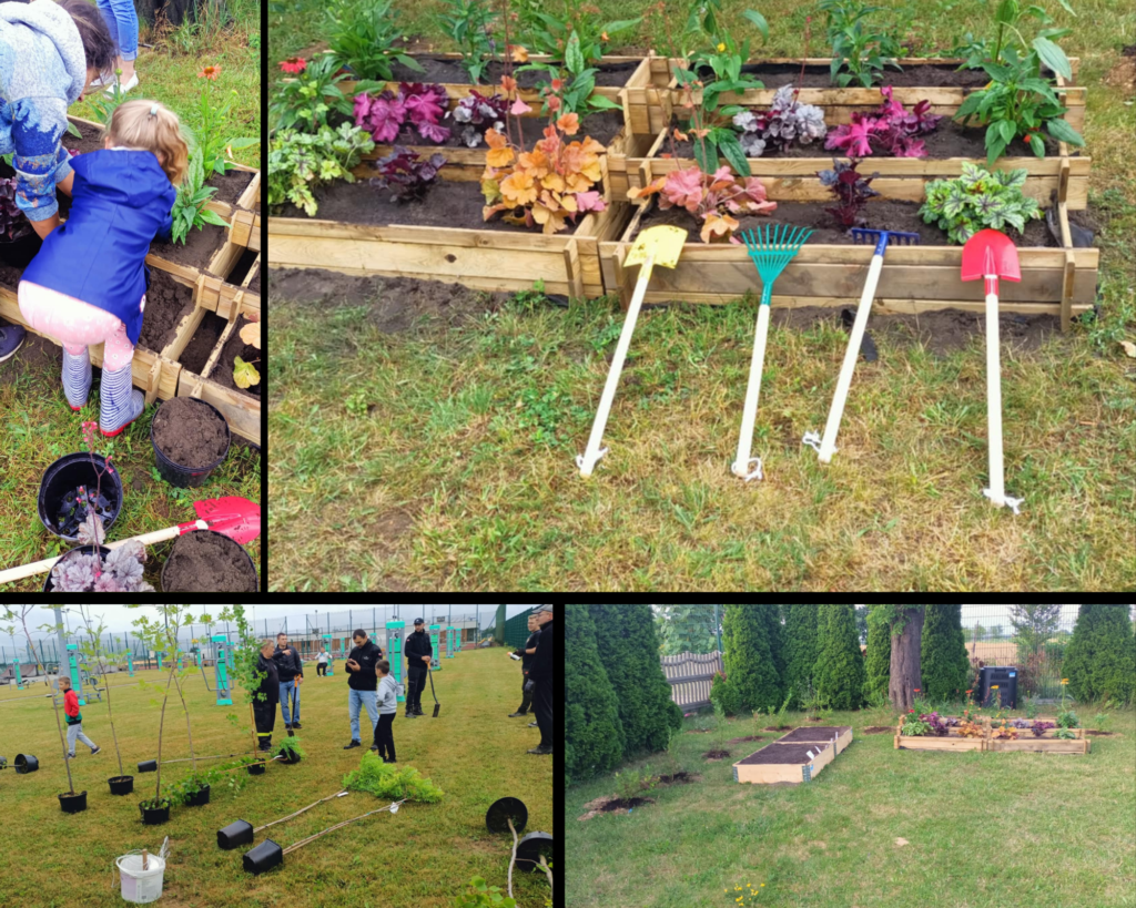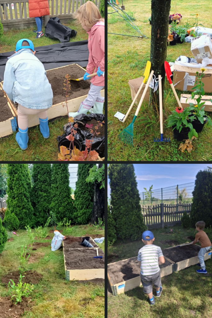 Jak można zauważyć na dołączonych zdjęciach dzieci były aktywnie zaangażowane w prace ogrodowe jak również ich rodzice oraz lokalna społeczność, co jest przykładem integracji międzypokoleniowej ku wspólnemu celowi, jakim było utworzenie ogródka warzywnego, który przyniesie korzyści w przyszłości.